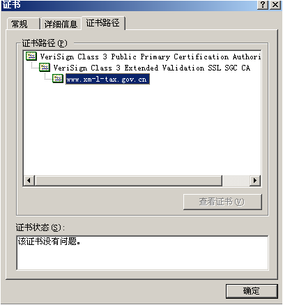 目前厦门地税网站在数据传输过程中使用服务器证书进行Https安全通道访问,确保传输过程中数据安全性。目前网站服务器证书使用的是VeriSign,以下是网站服务器证书的相关信息及证书链: