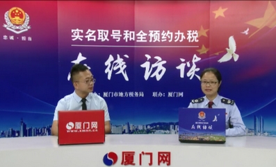 为减少上门办税等候时间,自8月21日起,我市地税系统各办税服务厅推行实名取号和全预约办税服务措施。我们特邀厦门地税局纳服处的陈慧菁做客在线访谈,对相关情况和注意事项进行介绍,与网友在线交流。